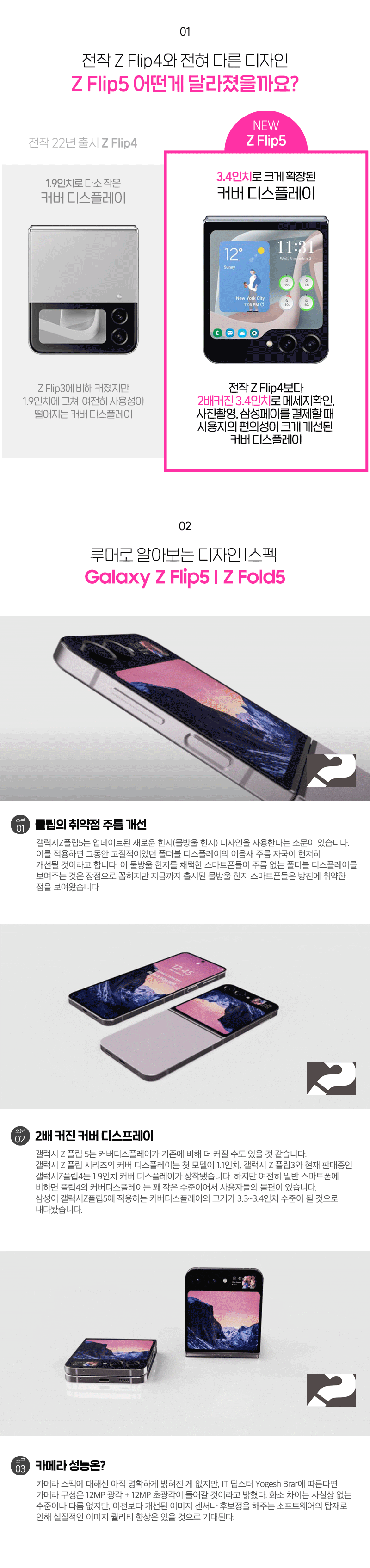 그래서 이번 플립5에서 개선되는 점인 것 같습니다. 무려 3.4인치 디스플레이가 커버에 들어간다고 합니다.